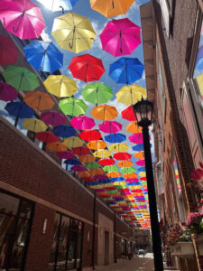 Art lovers are also drawn to Elmhurst thanks to the Umbrella Sky Project, now in its third year. “Elmhurst is the 6th city in the United States to host this beautiful overhead explosion of art and color,” Sopko says. With three locations across downtown, the installation has become a must-see photo op and another reason to visit, shop, and linger.