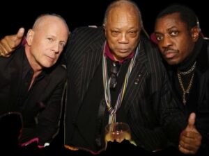 Bruce Willis, Quincy Jones, and Steve Jordan at the Jazz Foundation of America Annual Vibrato Event in LA